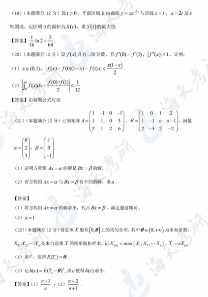 2024考研数学三真题及答案解析汇总
