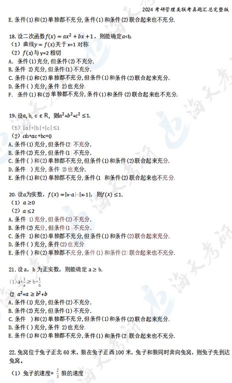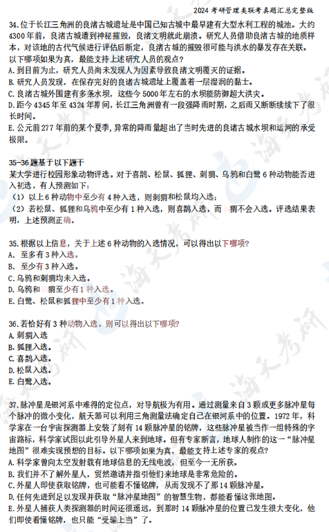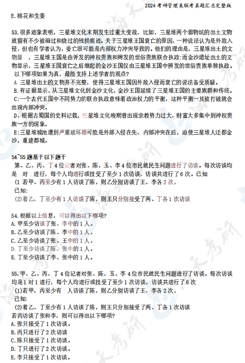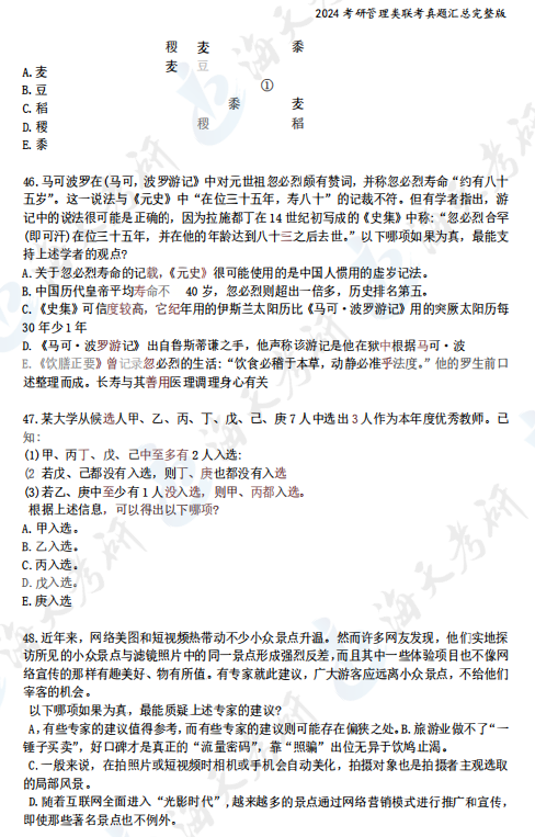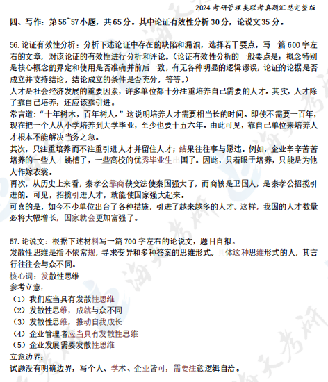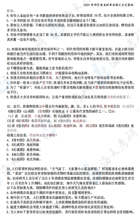 2024考研管理类综合能力真题汇总完整版