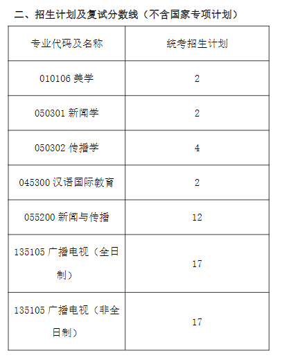 2023年国学专业中国哲学和中国古代文学方向复试人数为拟招生人数7人,且全部拟录取。